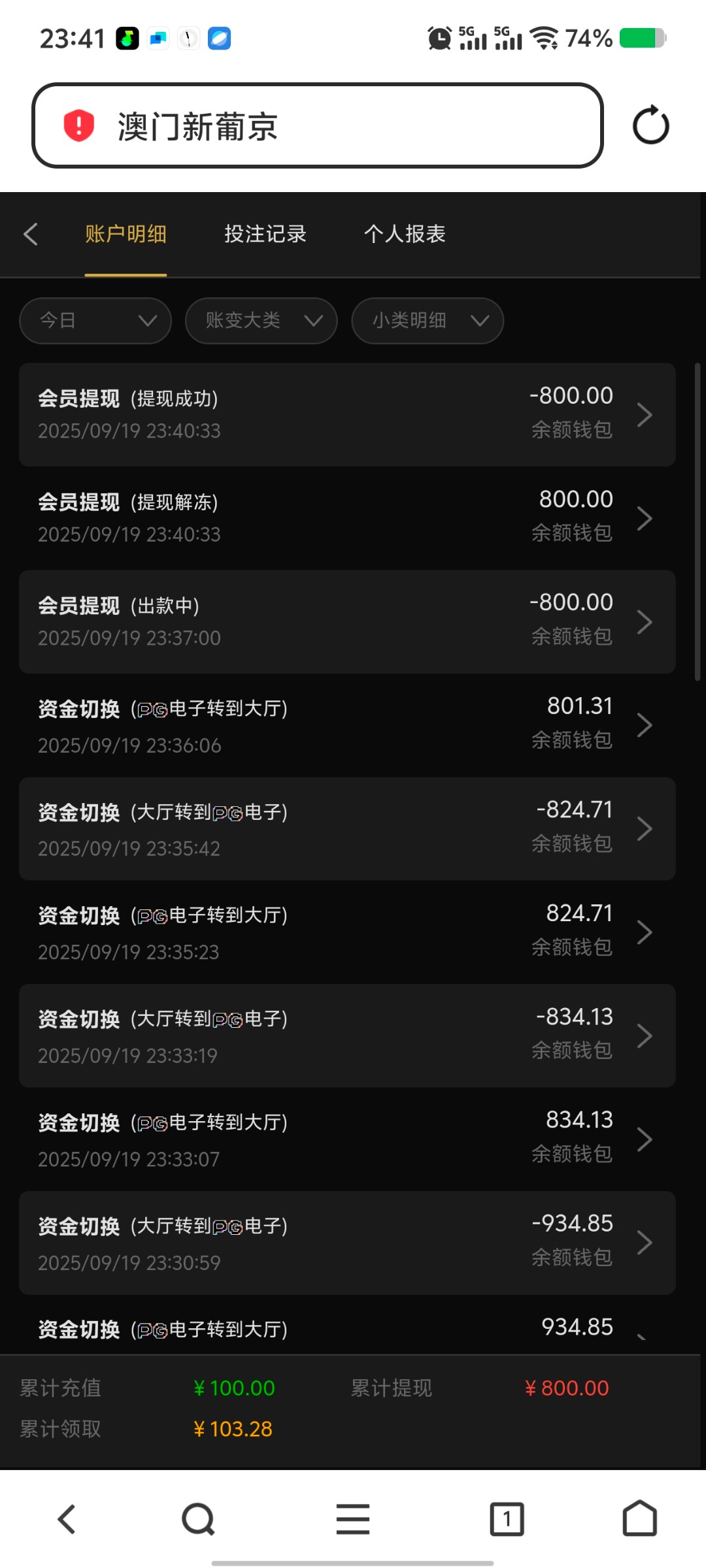 首存100送100  上第一个号就黑了,真衰