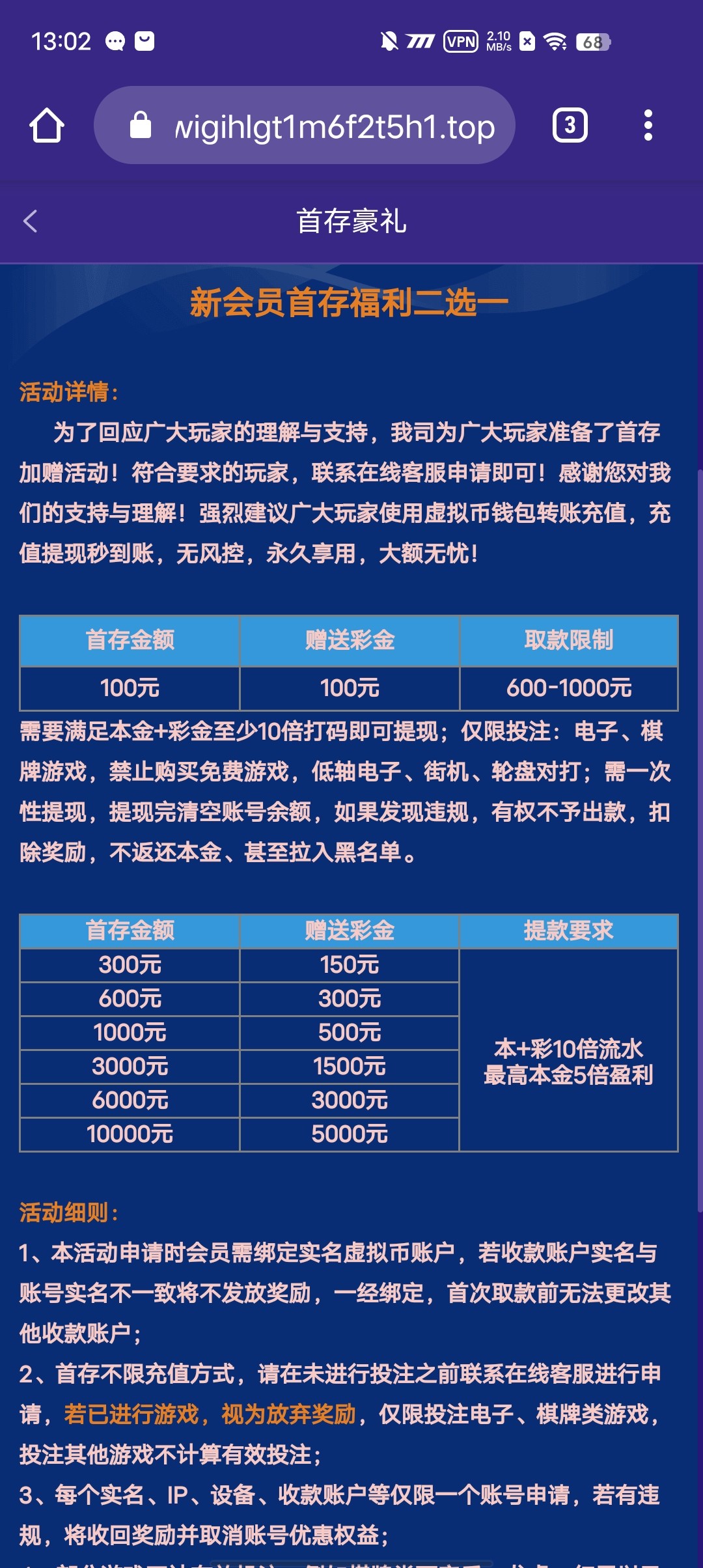 ⚜️首存活动⚜️100+100,10倍流水,只能电子、棋牌,禁止买免费,提款600-1000