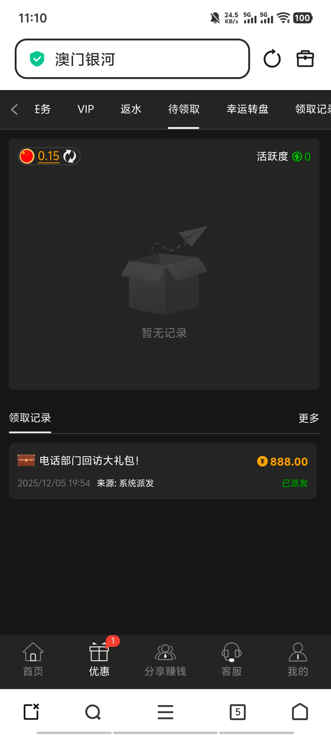 到账了,送了1888