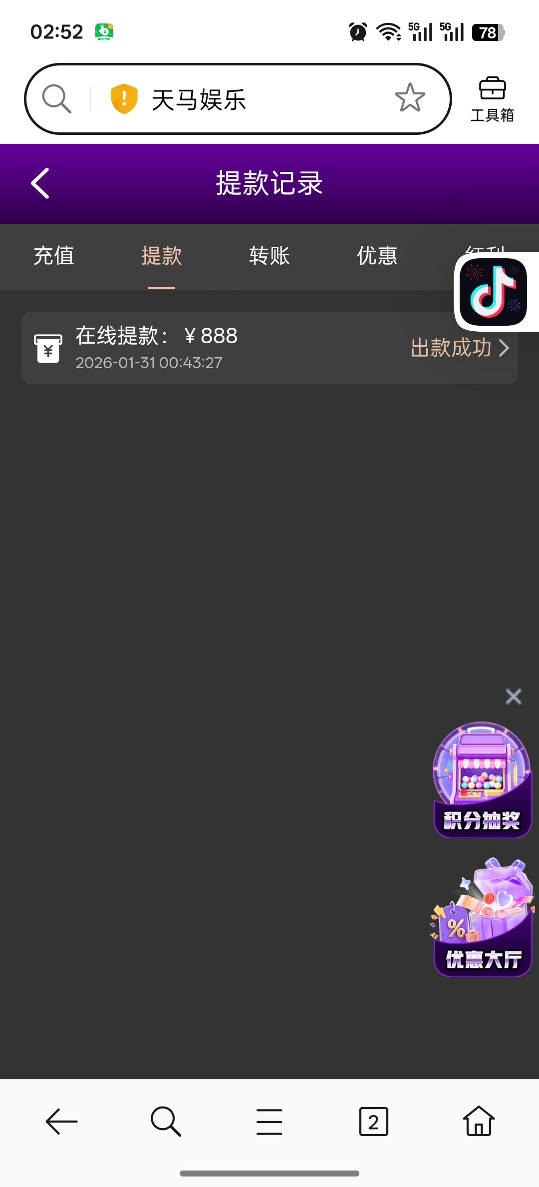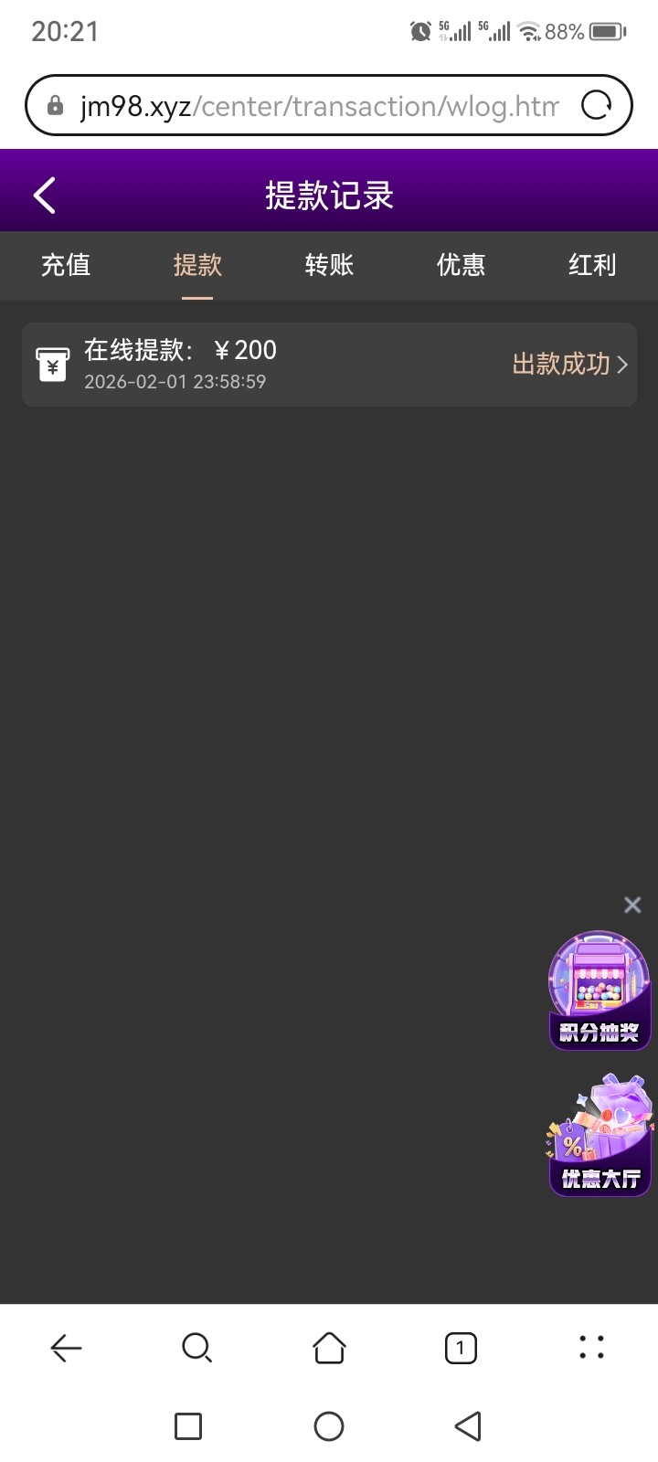 代码自助38元,8水,完成要求需要存款100(不可参与其他优惠),最多提款200元,具体规则自己看图。不喜欢可以不要。【代码可以先兑换,左上角点击彩金商场自助兑换】