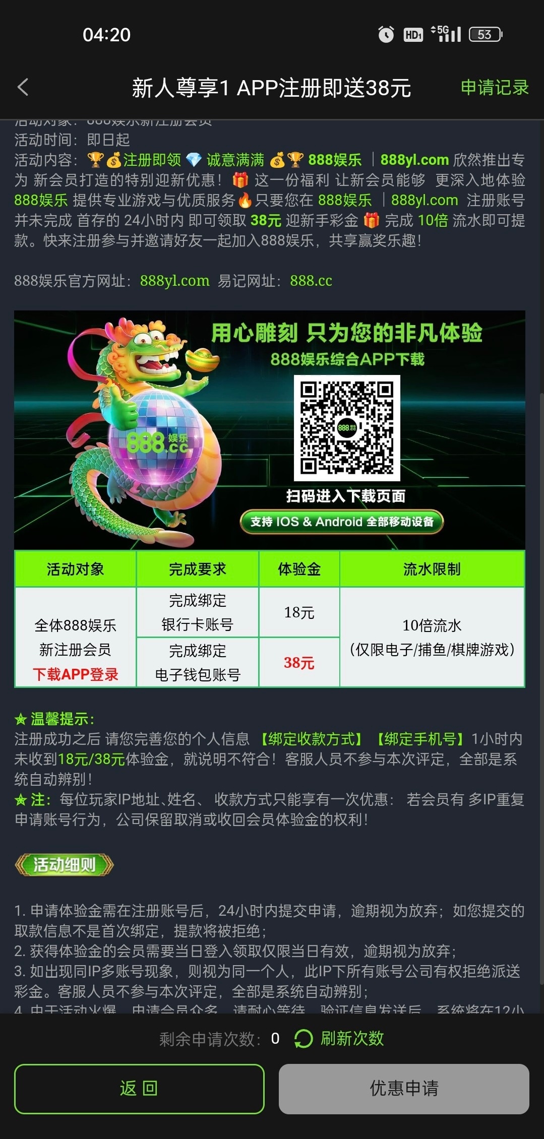 注册下载app绑定银行卡,去申请彩金